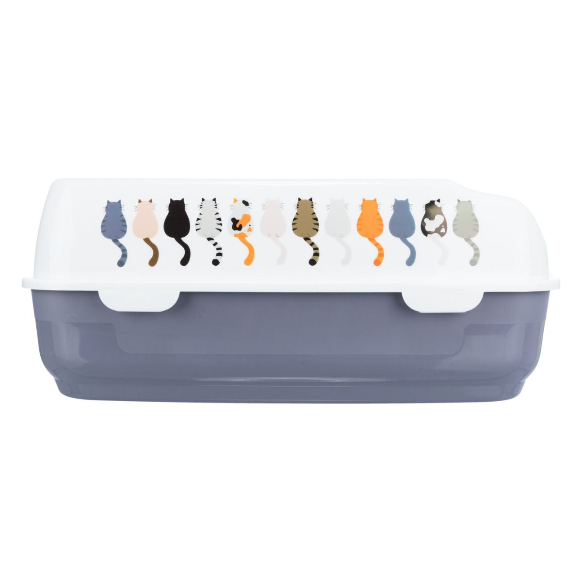 Ovaj model se ističe dekorativnim obodom sa šarenim motivima mačaka koji mu daje jedinstven i vedar izgled. Trixie Delio toalet za mačke dimenzija 50 × 38 × 20 cm idealan je za mačiće i odrasle mačke, a zahvaljujući visini oboda i čvrstom dizajnu pruža dodatnu stabilnost tokom upotrebe. Materijal je gladak, neporozan i otporan na mirise, što omogućava brzo i jednostavno održavanje higijene.