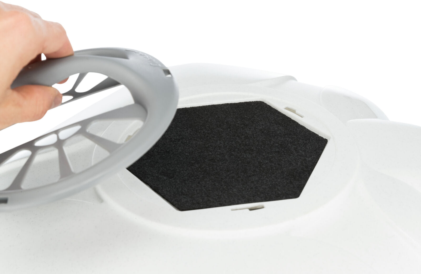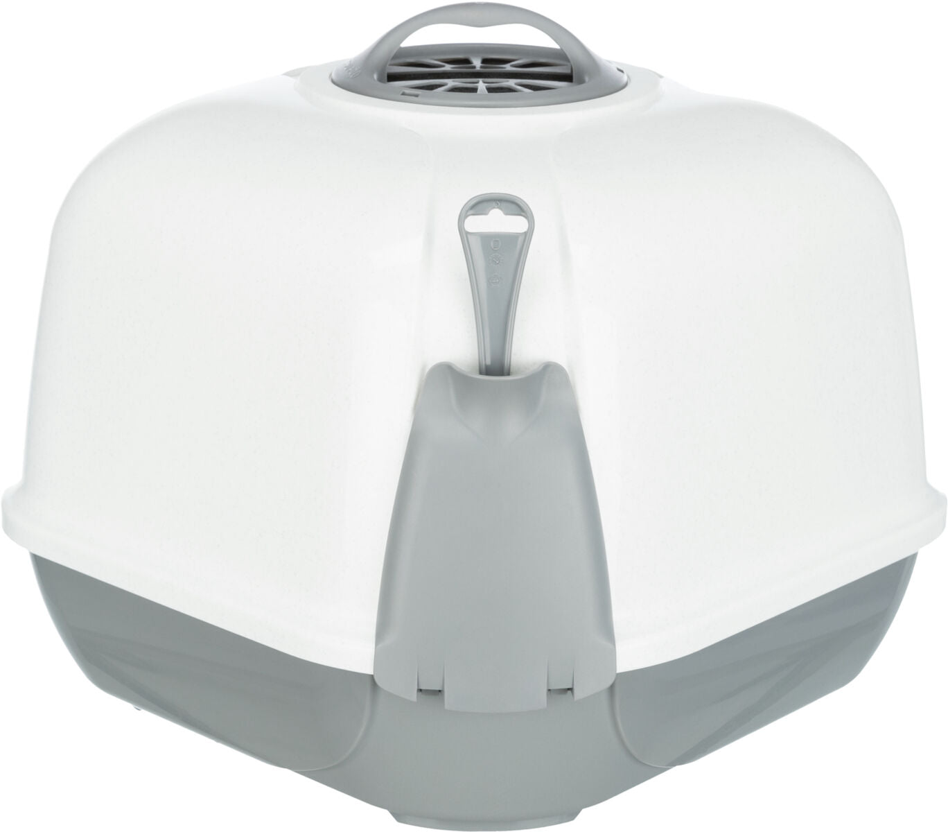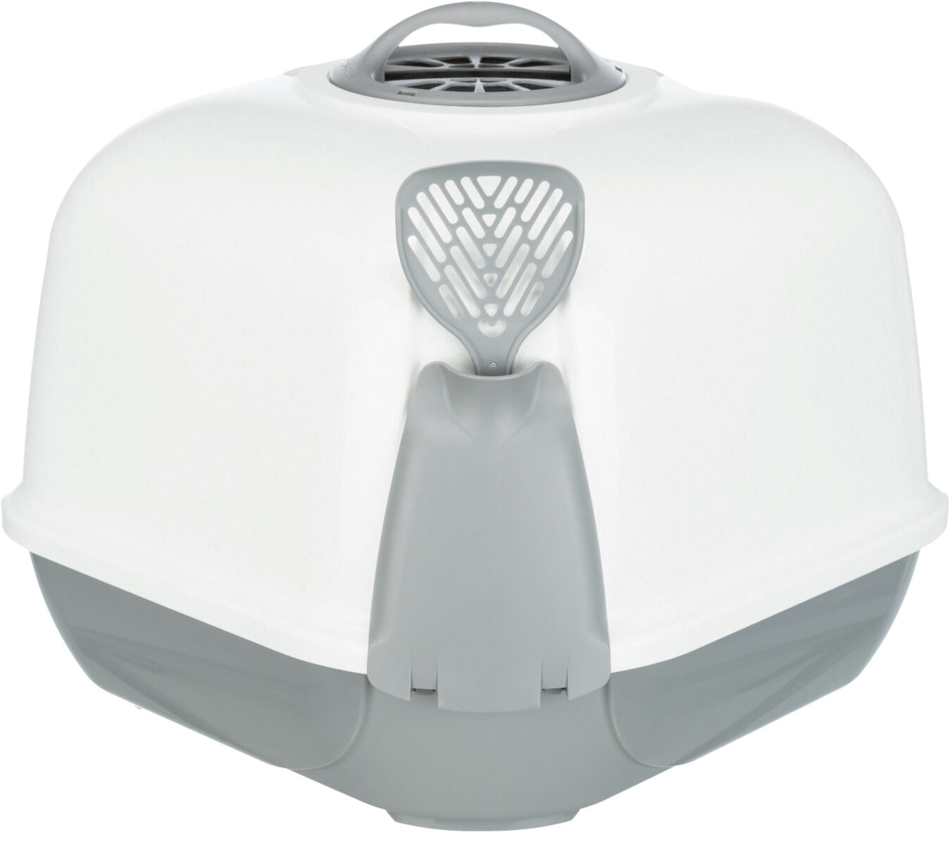 Opremljen je Easy Click kopčama koje omogućavaju lako otvaranje i zatvaranje gornjeg dela radi čišćenja. Ugrađeni filter sa aktivnim ugljem efikasno neutrališe neprijatne mirise, dok priložena merica olakšava svakodnevno čišćenje i doziranje peska. Trixie Maro ugaoni toalet za mačke ima čvrst poklopac sa vratima koja se tiho otvaraju i obezbeđuju mački privatnost prilikom korišćenja.