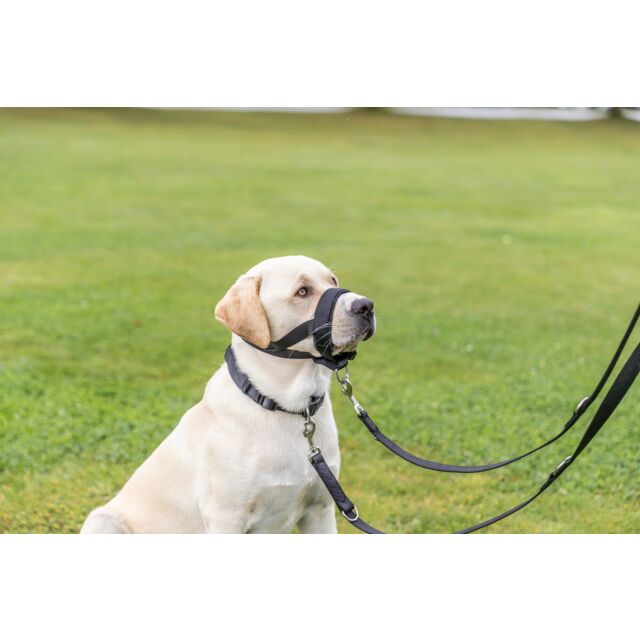 Izrađena je od izdržljivog najlona sa mekanom neopren postavom koja sprečava trenje i iritaciju kože. Zahvaljujući potpuno podesivim kaiševima za vrat i njušku, traka se lako prilagođava individualnoj građi psa.